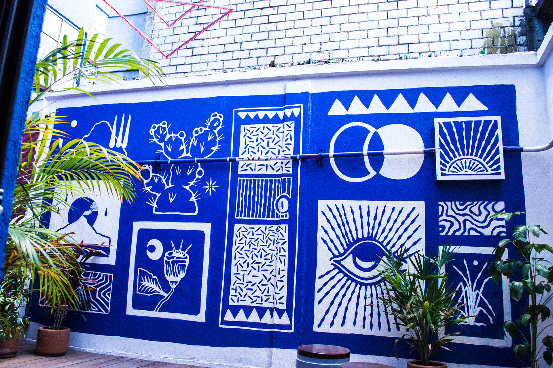 Murals created for a Hotel in Downtown México City. This space is used as a gallery, workshop, store, and speakeasy.
